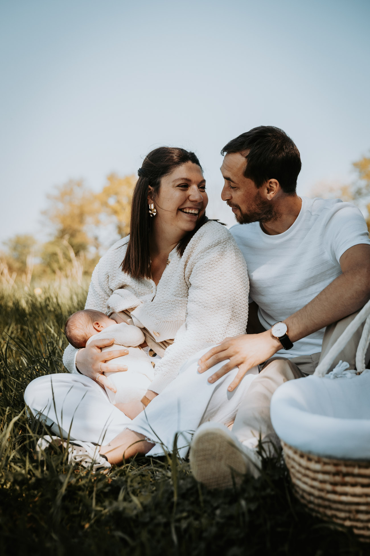 Quelques semaines plus tard, je reviens vous voir pour photographier les premiers instants avec votre bébé. Chez vous, dans votre quotidien. On ne cherche pas la mise en scène parfaite : je suis là pour capturer le naturel, les regards tendres, les gestes encore maladroits, les silences doux.