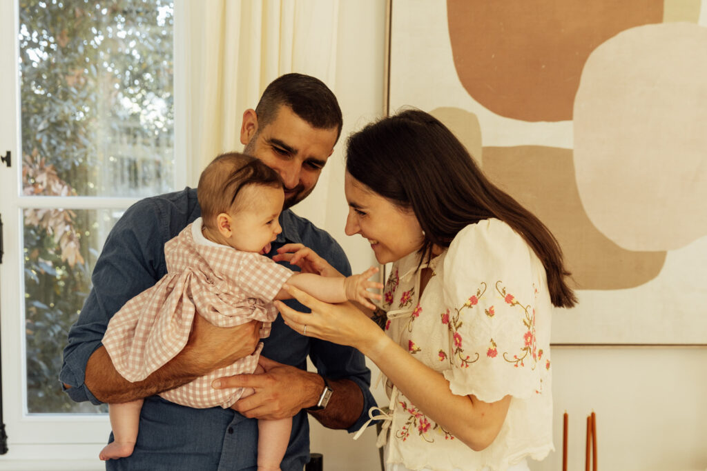 Pas besoin d’en faire trop : un simple moment à trois sur le canapé peut devenir une image précieuse.